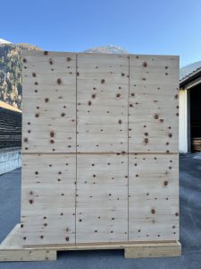 Schrank „Capricorn“ 3-türig aus Arvenholz massiv. Innen verstellbare Tablare und Kleiderstange.